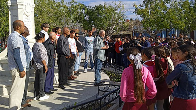 La jornada comenzó con una ofrenda floral al Apóstol en el parque Martí. Allí, bajo la guía del historiador provincial, Ángel Cabrera, se dio el primer paso de un itinerario que buscó hilvanar la historia local con los grandes procesos nacionales.