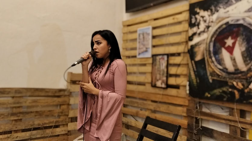 La cantante Rachel Medina ofreció un breve concierto en la noche sabatina del complejo cultural Café Barquito, de la AHS en Ciego de Ávila