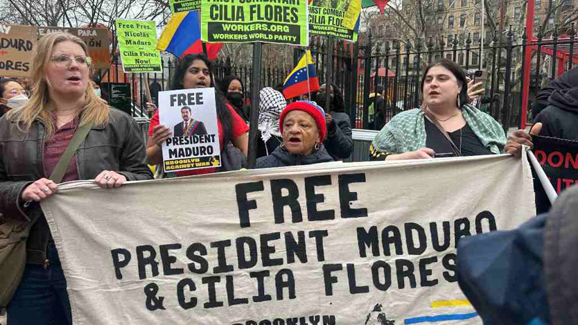 Decenas de personas mostraron este jueves su apoyo a Nicolás Maduro, presidente constitucional de Venezuela, durante su segunda comparecencia ante un juez federal del Distrito Sur de Nueva York.